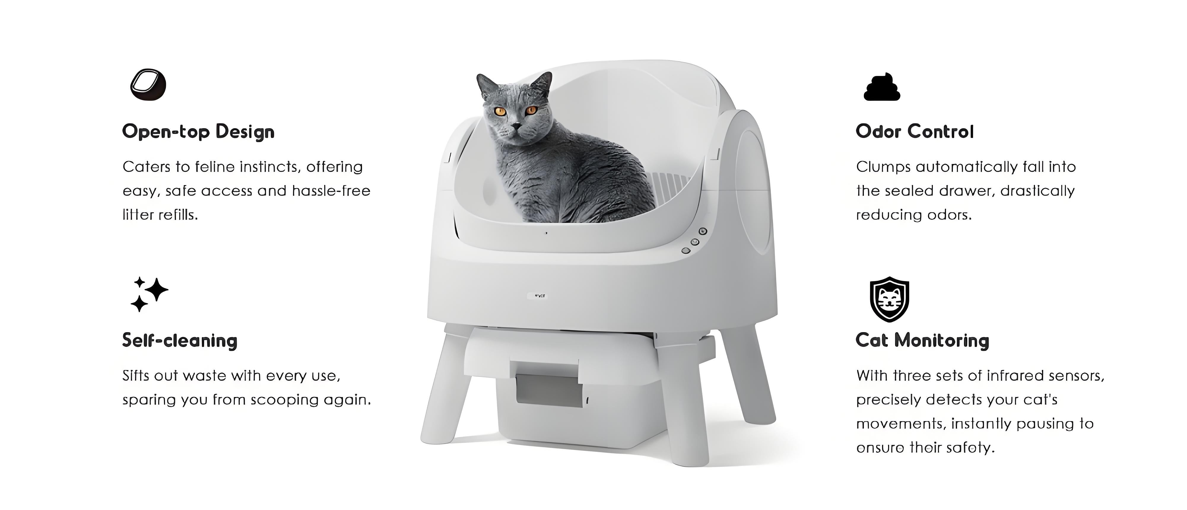This smart cat litter box has been afantastic investment for me. Vith itslife-changing auto-packing feature,there's no more mess, no more smelland no more back pain Plus, it looks great and fits perfectlywith my home decor.100%%satisfed.