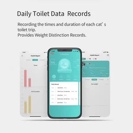 To make the pet-raising experience more intelligent, the smart automatic cat litter box supports 2.4GHz WiFi + Bluetooth dual connection. After downloading the dedicated APP on the mobile phone and completing the pairing, cat owners can check the working status of the device at any time: such as cleaning records (when the cleaning was carried out and whether the cleaning was completed), waste box capacity reminder (when the waste box is about to be full, the APP will send a reminder to avoid forgetting to clean it), and statistics of the cat's usage times (understand the cat's health status through data, such as whether there are abnormalities such as frequent urination or constipation).